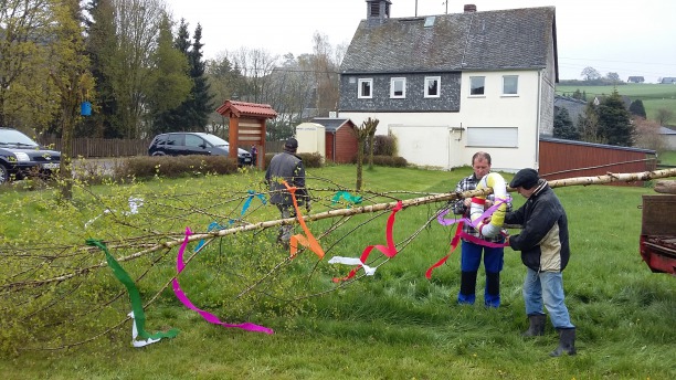 Wer mit möchte zum Maibaum holen, sollte sich gegen 09:00 Uhr an der Kreuzung Hauptstraße, Eichholz und Hohlgasse einfinden.