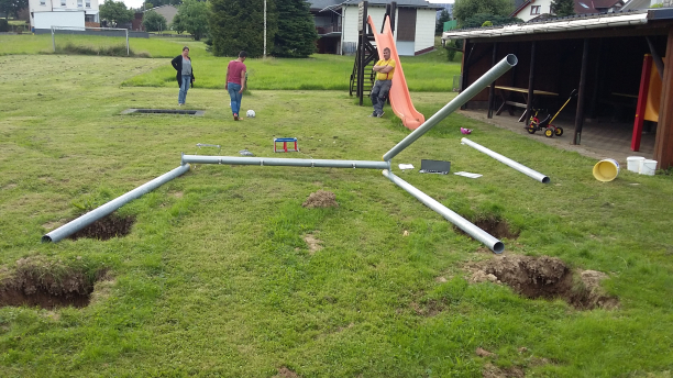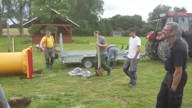 Unser Dank geht an die RWE für die Spende der Geräte, an die Firma Fix & Fertig, Bärenbach für die Spende der Baggerstunden sowie die Firma Blümling, Sohren für die Spende beim Frischbeton aus der Betontankstelle, sowie bei allen Freiwilligen für die Hilfe beim Aufbau.