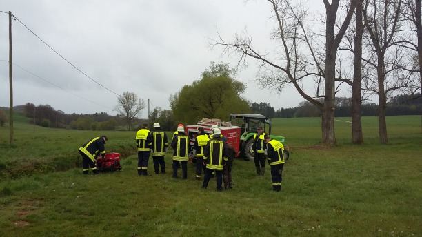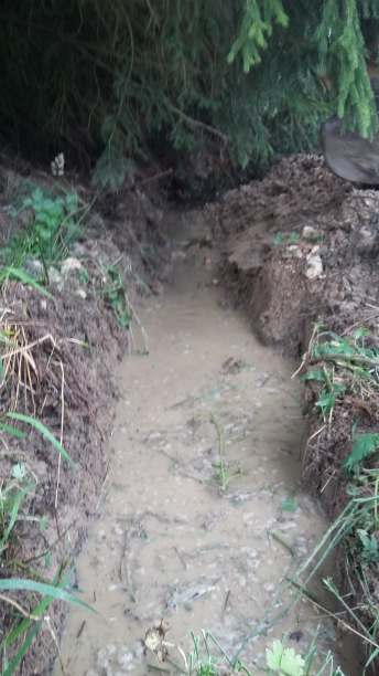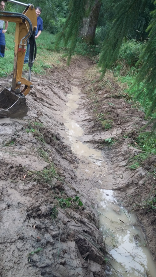Am heutigen Tag wurde der im Laufe der Jahre zugewachsene und durch Tief Elvira endgültig "zugeschlammte" Entwässerungsgraben unterhalb des Rückhaltebeckens am Ortsausgang in Richtung Kludenbach vom Unrat gesäubert und teilweise neu ausgebaggert. Die Arbeiten wurden durch Freiwillige und eine durch die Verbandsgemeinde-verwaltung beauftragte Firma durchgeführt. Siehe Bilderstrecke.