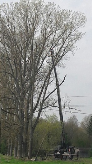 In dieser Woche wurden die beiden kranken Pappeln hinter der Grillhütte, welche eine Gefahr darstellten, gefällt. Zunächst wurden die Bäume mittels eines Kranes der Firma Bernd Christ beschnitten und dann die Stämme gefällt. Das angefallene Holz wird in den nächsten Tagen beseitigt.
