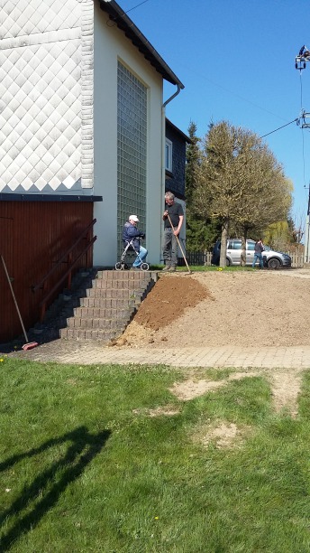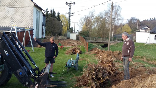 Rund um das Gemeindehaus wurden am Wochenende vor Ostern verschiedene Arbeiten durchgeführt. Alte Hecken, Sträucher und Baumstümpfe wurden beseitigt, die Flächen begradigt, Wurzeln gezogen und Löcher mit Mutterboden befüllt. Wie auf der Bilderstrecke zu sehen ist, hatte sich Alt und Jung eingefunden um tatkräftig mit zu helfen, die Arbeiten zu beobachten oder Tipps zu geben. Ein Dank an alle Helfer.