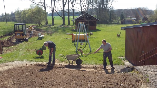 In den kommenden Tagen wird nun noch Rasen gesät und Anfang Mai der Zaun zwischen Bach und Spielplatz erneuert.