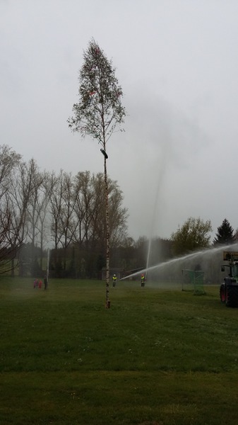 Trotz Nieselregen machten sich auch in diesem Jahr 11 junge und jungebliebene Maihexen am frühen Morgen des o1. Mai auf den Weg um einen Maibaum zu schlagen. Nachdem dieser ins Dorf verbracht und am Gemeindehaus gestellt war, wurde das Feuer geschürt und die Übung der Feuerwehrkameradschaft Metzenhausen/Todenroth abgehalten, bei welcher auch die Jüngsten bereits Feuerwehrluft schnuppern durften.