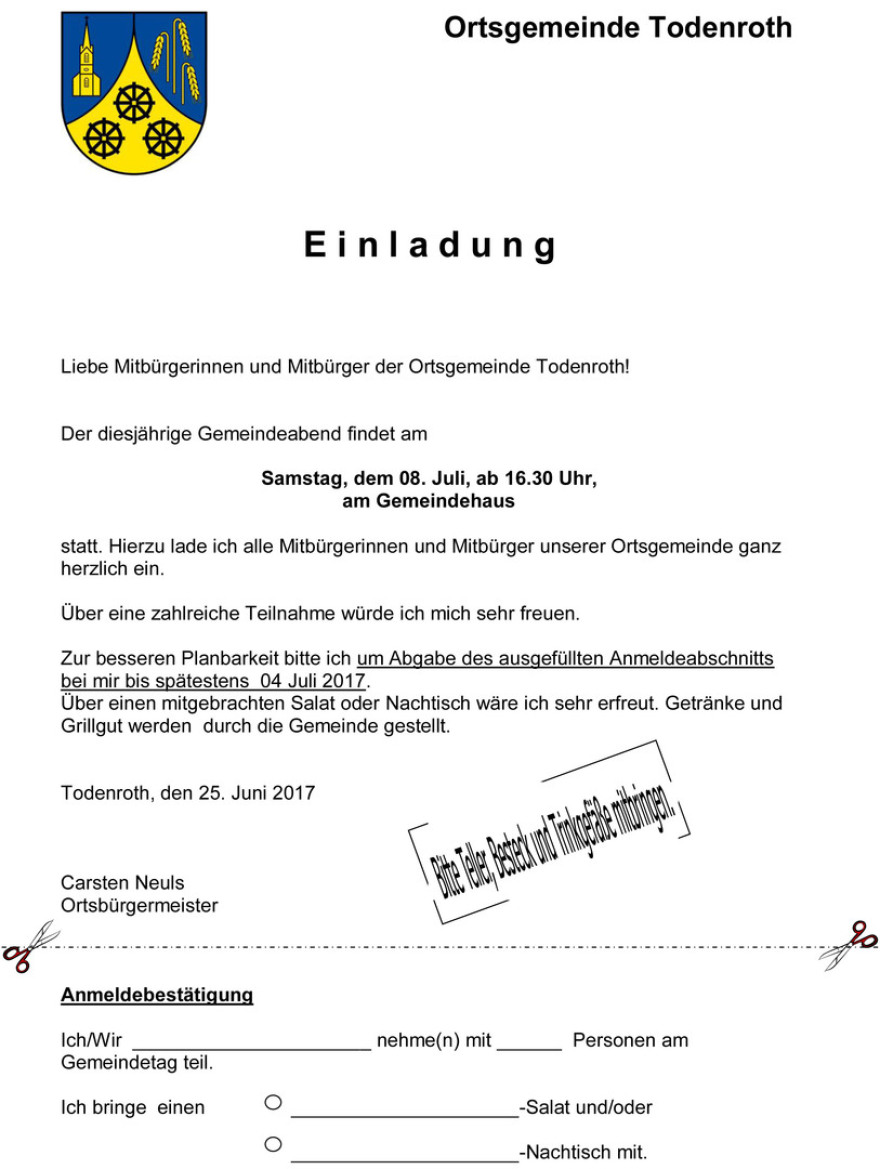 Über eine rege Teilnahme würden der Gemeinderat und ich uns sehr freuen.