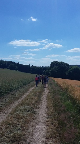 Im Anschluss wird ein „Pilgertrunk“ - Rheingauer Hildegardis-Wein aus der Abtei St. Hildegard
