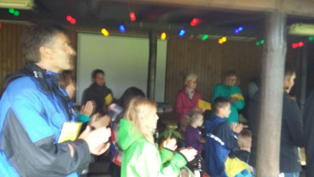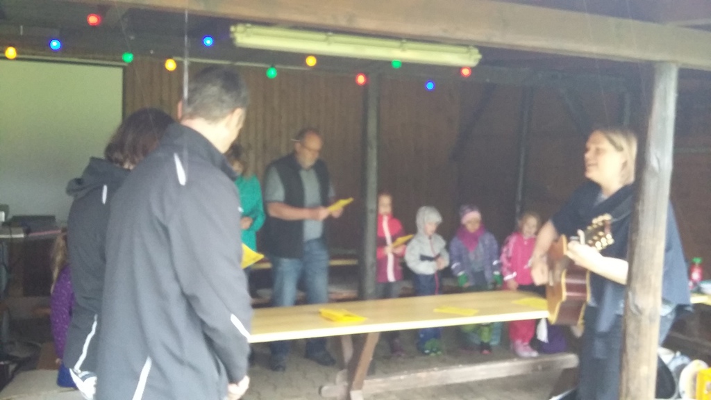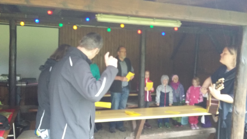 Trotz durchgehendem Regen hatten sich die wetterfesten Bewohner des oberen Kyrbachtals auf dem Grillplatz in Todenroth getroffen, um das diesjährige Abschlussfest des Kindersommers zu feiern. Nach einem wunderschön gestalteten Kindergottesdienst durch Pfarrerin Menzel mit Donner aus der Büchse und Mitmachbewegungsmusik wurde gemeinsam gegessen und (im Regen) gespielt.