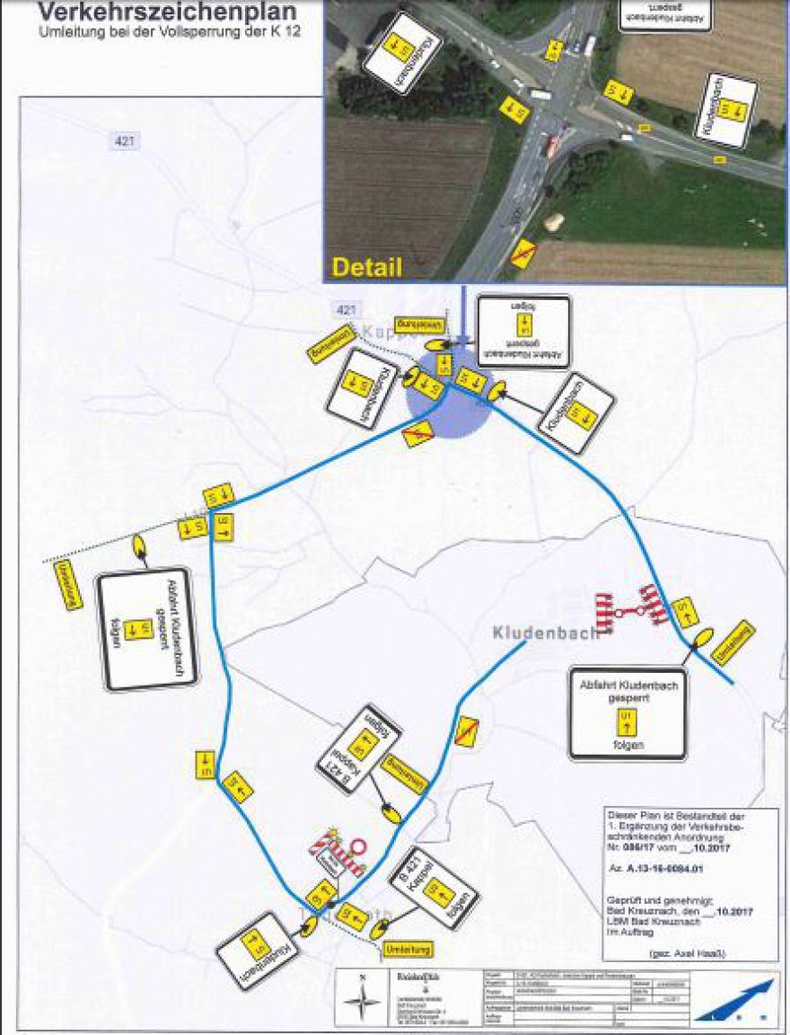 Umleitung wegen Ausbau der Kreuzung AS Kludenbach an der B 421 (06.10.2017)