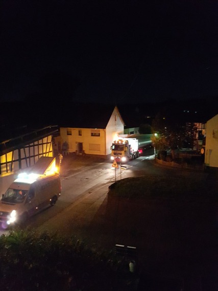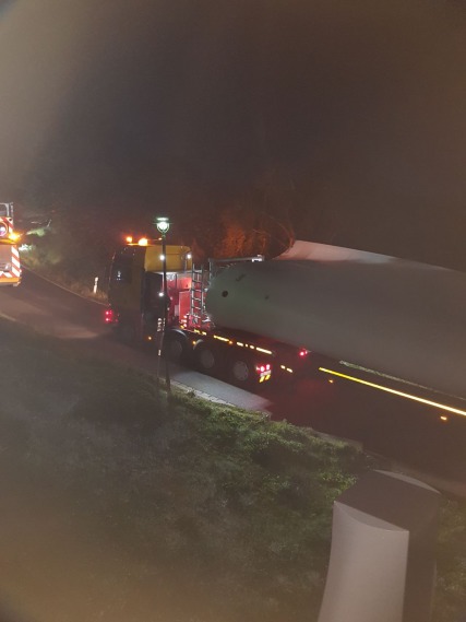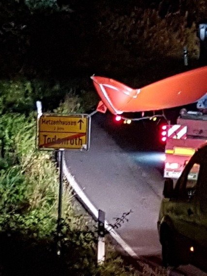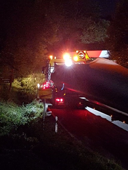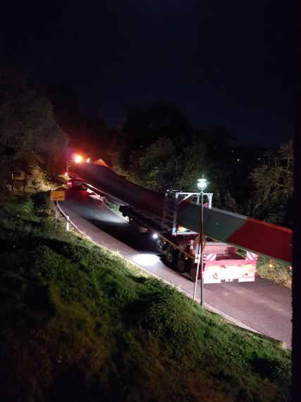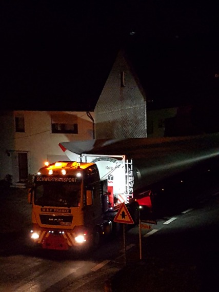 In der Nacht von Donnerstag auf Freitag wurden die Flügel für das letzte Windrad im Windpark Nieder Kostenz durch Todenroth transportiert (siehe Bilder). Das Halteverbot entlang der Hauptstraße wurde daher am heutigen Freitag aufgehoben, die Schilder sind bereits entfernt.