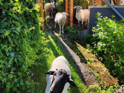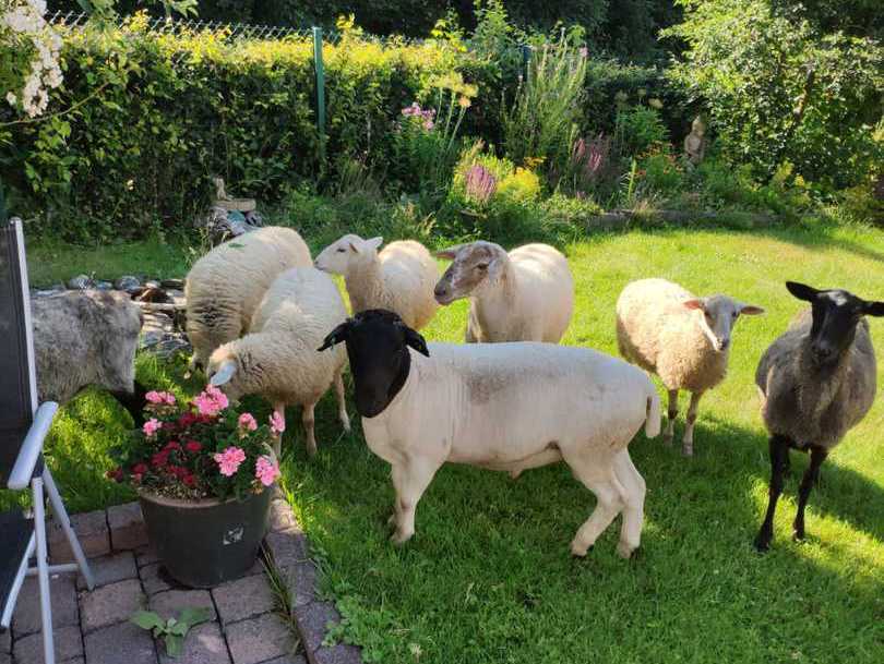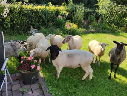 Offensichtlich war es den Todenrother Schafen auf der Weide zu langweilig oder die Eltern wollten ihren Jungen mal die große Welt zeigen. Und so statteten sie den Nachbarn einen Besuch ab. Außer den "Hinterlassenschaften" auf der Wiese und ein paar angeknabberten Blumen ist jedoch nichts passiert.