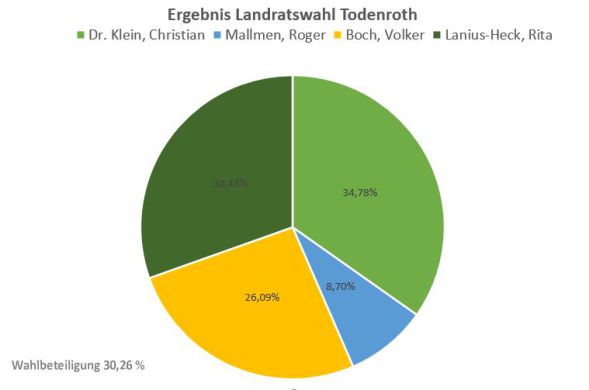 Bei der Landratswahl am 16. Januar 2022 ergab sich in der Ortsgemeinde folgendes Ergebnis: